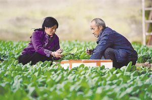 在果洛州农牧业生态科技示范园内,菜农在采摘蔬菜。张龙摄