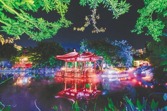 8月27日晚,在海口五公祠景区,唐宫宴舞夜游节正式开启。