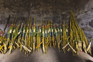 制芦笙的材料一般都就地取材,杨枝光开春前进山,选择皮薄、节长的“芦笙竹”,在每年农历十月以后至次年开春前采回,晾干。做笙斗、做共鸣筒都简单,只需把竹子按一定的比例锯成段后,然后把里边的竹节打通。