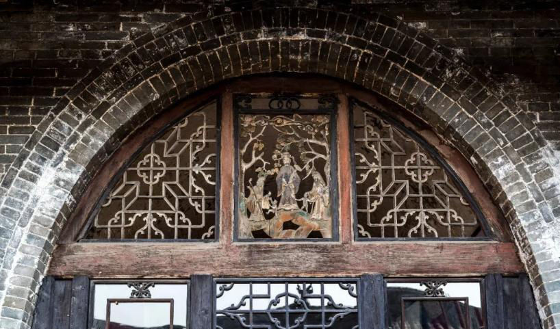 正厅大门之上的门楣,是一块精美绝伦的木雕,采用雕、嵌、描、绘等多种装饰技法,将喜鹊闹春的场景表达得惟妙惟肖,具有极高的艺术价值;除了雕刻着代表中国传统文化精神的梅兰竹菊外,许多地方的门窗,尤其是专供男孩子们读书的庭院中的窗子,都雕成简洁古朴的书本或折扇的形状,表达了“万般皆下品,唯有读书高”的文化追求。