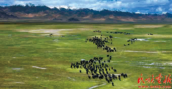 青海担负着保护三江源、保护“中华水塔”的重大责任。为确保“一江清水向东流”,青海各族人民积极投入生态文明建设,三江源植被逐渐恢复,野生动物数量增加。图为野牦牛奔跑在高原(民族画报资料)