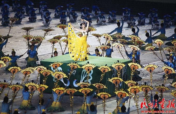 1990年北京亚运会闭幕式上杨丽萍表演《孔雀舞》,这次亮相让杨丽萍和中国民族民间舞蹈受到更多外界的关注(民族画报资料)