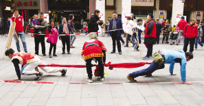 中国民族报讯 高脚竞速、板鞋竞速、射弩、押加……近日,2019年广州市少数民族体育花会在越秀区举行,上万名市民欣赏了少数民族传统体育表演,并参与互动。