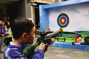 小朋友在少数民族体育花会上体验射弩。(广州市民宗局提供)