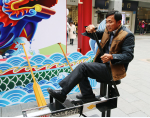 市民模拟划龙舟。(广州市民宗局提供)
