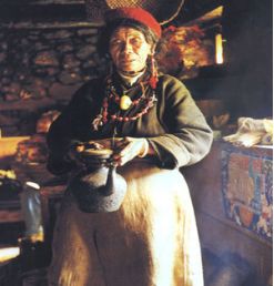 门巴族妇女在打酥油