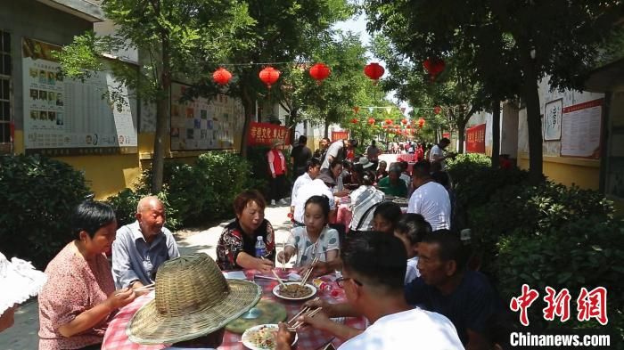 “孝善羊汤宴”将伏羊节推向高潮,当地村庄免费请“孝善人家”代表等“喝伏羊”。 付宏 摄