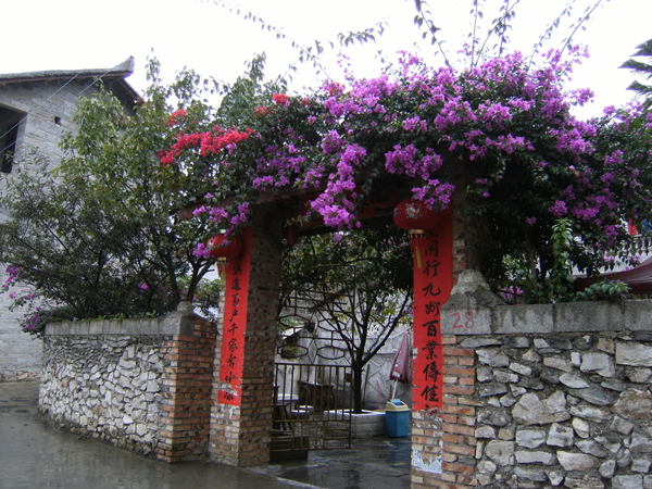 徜徉寨中,最常碰见的是一株株参天的古树,最少都有几百年的树龄了。古树和村寨谁更年长,谁也说不清。布依族崇尚大自然,长过几十年的树都不会去砍伐。村中白石桥畔有一株树龄超过900年的黄葛,黄葛树根下又长出一株棠梨合二为一,根与根相连,枝与枝相拥,村里的老人说这是夫妻树,是神灵告诫村民要家庭和睦,夫妻相敬相爱。