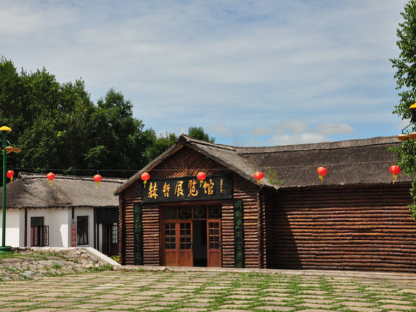 走进木建筑的赫哲族展览馆内,这里陈列着赫哲族的鱼皮服装,展示生活习俗,丰富的渔猎资源,以及名人及文化艺术。院内有一座棕红色的《山魂》雕塑,这座雕塑作品也是赫哲族发展史的一个形象说明,再现了赫哲族的狩猎文化,领略到赫哲人勤劳勇敢的精神面貌。猎熊、神偶群、狗拉爬犁、鳇鱼雕塑等一系列具有赫哲风情的旅游景点都展现了赫哲人许久以来的质朴民风和极具特色的民族风情。文化村将自然环境与民族文化融为一体,成功复活了赫哲族历史。