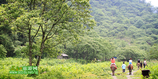 除了丰厚的历史人文底蕴,三江还有绝美的自然风光。三江生态风景区总面积188平方公里,距成都仅103KM。景区由西河风景区、中河风景区及盘龙山风景区三部分组成。蓝色的漂流河谷、五彩的海子流泉、遮天蔽日的原始森林、珍稀的奇花异兽、梦幻的流云霞光、浪漫的红叶白雪、斑斓的野花草原,构成了三江风景区生机盎然的原生态画卷。这里的红叶、漂流、穿越、森林小火车、溜索在川内都小有名气。