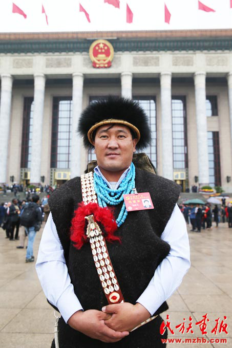参加党的十九大、西藏自治区珞巴族代表达波儿(滕俊 摄影)