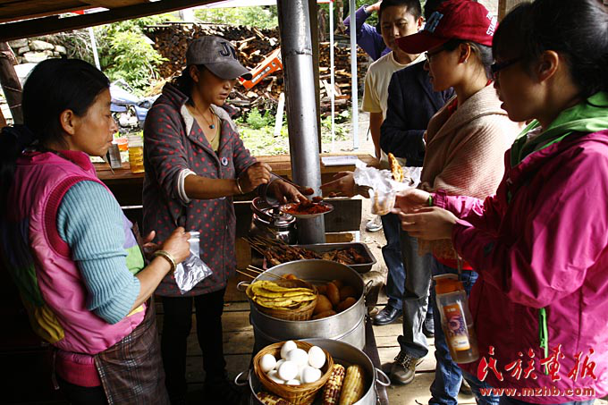 珞巴族农家乐小吃摊也吸引了许多游客(列来拉杜 摄影)
