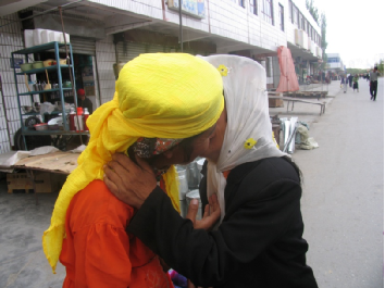 塔吉克族民风淳朴,热情好客,讲究礼节。他们的礼节质朴而亲切,一般男子见面时通常会互相握手;妇女相见时,长辈吻晚辈的眼睛或者前额,晚辈要吻长辈的手心;平辈见面时,一般都会互吻面颊和嘴唇;男女同辈相见时,女方要吻男方的手心或握手;子女与父母相见时,子女要吻父母手心,以示对父母的敬重与爱戴。在塔吉克族家庭中,他们最热情的礼节就是拥抱。
