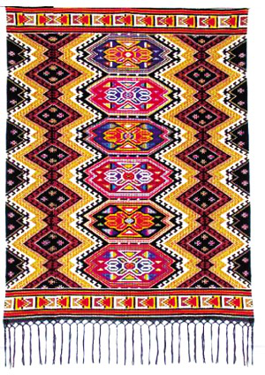 在长期的艺术实践中,叶水云感到自己的专业美术水平有限。于是,她考入凤凰职业中专学习美术专业,并被留校任教,后又在湘西州教育学院进修大学美术专业。“土家织锦没有草稿,最重要的一个环节就是配色。以前配色没有理论指导,主要从个人感觉出发,喜欢红、绿等艳色系。除了讲究图案平整以外,配得好不好自己也不清楚。学习后才慢慢认识到,配色应注重冷暖色调的对比与衬托。”所以,叶水云织出来的“西兰卡普”色彩更为统一调和,艳而不俗,粗犷中有细节,大气中有精巧,看上去更加舒服。