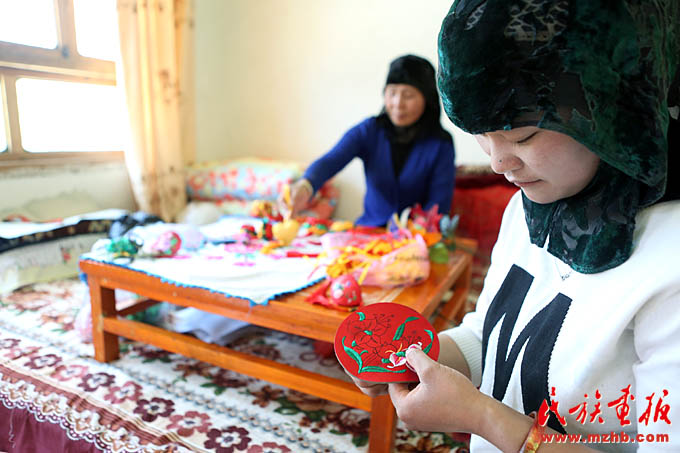 东乡县妇联开展的手工编织技能培训使更多东乡族妇女利用刺绣等一技之长增加了家庭收入(胡发伟 摄影)