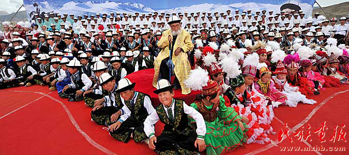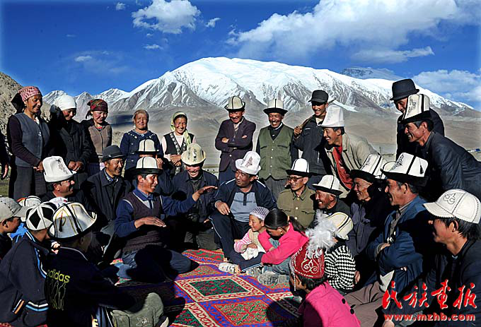 在慕士塔格峰下传唱《玛纳斯》的柯尔克孜人(约提克尔 ·尼加提 摄影)