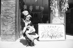 午后,张国丽文文静静地坐在店前刺绣,绣帕上是一对鲜活的鸯鸯。“潇洒、飘逸、俊秀是张国丽刺绣创作的风格,许多来旅游的人都是这样评价的。她独树一帜,尽情彰显了羌风羌韵。”袁顺燕严肃认真地解说。