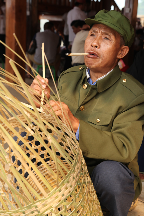(1)竹编。布朗族居住地盛产竹子和藤篾,家庭用具、生产工具多偏爱竹制品。每一个布朗族成年男子都会编织各种竹器,如篾箩、饭盒、簸箕、篾席、背篓、篾桌、针线盒等。这些手工艺品多数自用,剩余的拿到坝区市场进行交换。也有少数人以编制竹器为生。布朗族男女都会编制盖房用的草排。