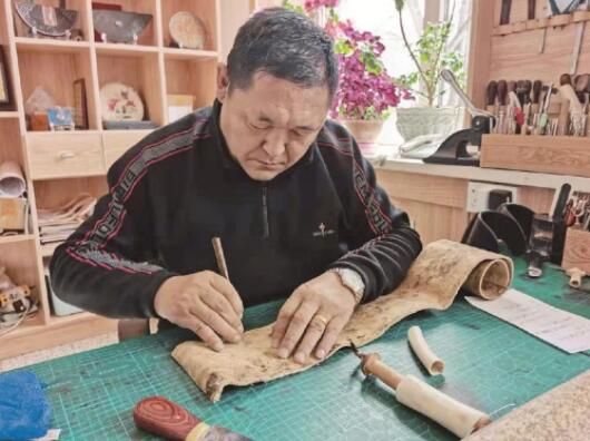 “触网”是万德顺应时代的一次尝试,也是他手工皮艺之路的又一次转型。12岁时,他从马背上摔下来,在舅爷家休养时第一次接触到皮雕,并与皮雕结下不解之缘。42岁时,万德在手术中发生意外导致瘫痪。经历了迷茫、绝望的他,决定重拾老祖宗留下的手工皮艺,在轮椅上把传承家族皮雕手艺作为后半生奋斗的事业。