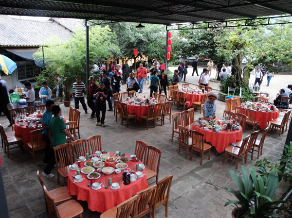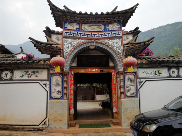 漫步在村道里,可以看见古色流香白族门楼,门楼写“灵山一家”、“凤尾居”、“古树人家”、“松风园”等牌匾,每家都各具特色,无不散发出浓浓农家风味和优雅文化气息。在这些集餐饮、休闲、住宿为一体的白族特色农家乐,游客可以品尝到当地特产野生冷菌、鸡 、树花、香竹笋、青蛙皮、金雀花,也可以躺在数百年的古板栗树下的摇椅中,细细品味‘心静秋澄月,情空云淡天’的意境。