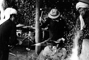 阿昌族有句口头禅:“大路不通长刀砍!”在云南省陇川县户撒乡,整个坝子好比一座手工业加工厂,各寨就是车间,各自生产自己的“拳头产品”——腰刀、背刀、花钢刀、黑长刀、藏刀等。品种繁多、制作精巧的户撒刀不仅是当地阿昌人的生活必需品,也是深受其他民族地区群众喜爱的产品。在户撒刀身上,还蕴藏着阿昌族的历史和文化之魂。