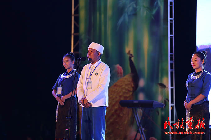 18日晚,盈江县委副书记、县长岩补宣布傣历新年庆典活动正式开幕