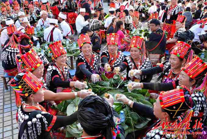尚立文向记者介绍说:“以前景颇族过年,大年三十,一部分男人在家杀年猪,其余的就上山打猎。景颇族很慷慨,凡是获取到的猎物,见者都有份。女人除了在家准备年夜饭,也会上山或下坝子采野菜等。但不管是打猎的还是摘野菜的,都必须在太阳落山前到家,阖家欢度春节吃年夜饭。现在生活好了,不打猎不摘野菜了,但还是得遵循太阳落山之前到家的习俗。”