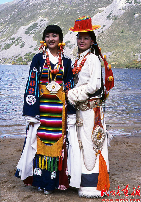 纵观中国少数民族的服饰色彩,没有一个民族的服饰色彩是单一的,有的民族可能比较含蓄,他们只是在裙摆缀上一条细细的花边,在衣领上绣一排小小的花朵, 或是把彩虹缠上衣袖;有的民族可能比较奔放,他们把鲜艳的花朵大大地绣在胸前背后,或是用红、黄、黑等大色块来组成长裙……“赤橙黄绿青蓝紫,谁持彩练当空舞”,在中华大地上舞动赤橙黄绿青蓝紫的是55个少数民族的兄弟姐妹。