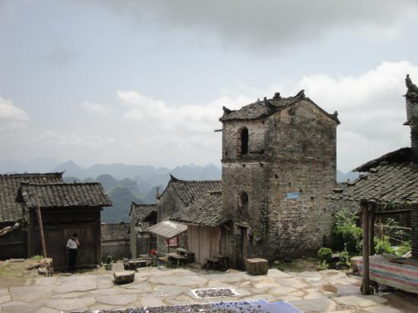 千年瑶寨最后一位瑶王叫做邓买尾八公,瑶寨的瑶王也是全寨军事行政最高长官,瑶王的房前是一处很宽敞的吊脚楼,形成一个木质的平台,一个牛角的标志物竖立在房前。远远看去,群山叠嶂,据说能看到三个省的三座高山,号称“三州山”,是广东省的连州、广西的梧州和湖南省的荆州的三座高山。