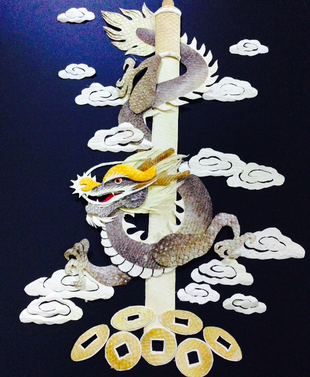 制作鱼皮画,首先必须对鱼皮进行加工处理。手工费时大约3天,要经过剥制,晾干去鳞、晾晒鱼皮、捶熟、漂色等许多细致环节。鱼皮画分为粘贴和镂刻两种。粘贴画制作相对来说较为容易,先勾勒出初稿,然后选好底衬,再选适当的鱼皮进行剪制。这一步骤特别重要,首先要确定要粘贴的部位,来选则鱼皮的颜色,剪完之后,就可往底纸进行粘贴了,一幅鱼皮画也就完成了。内容一般生活方面的事物,还有动物、人物等等。鱼皮镂刻是先选好鱼皮,一般都是选择比较大的鱼皮,有阴刻和阳刻两种,在鱼皮的反面进行勾画(也可直接剪制 ) 经过剪刻完成。
