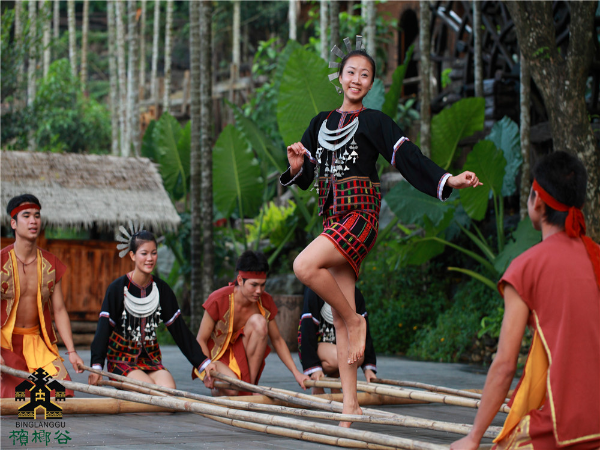 槟榔谷因其两边森林层峦叠嶂,中间是一条延绵数公里的槟榔谷地而得名。景区由非遗村、甘什黎村、雨林苗寨、田野黎家、《槟榔·古韵》大型实景演出、兰花小木屋、黎苗风味美食街七大文化体验区构成,风景秀丽。景区内还展示了十项国家级非物质文化遗产,其中“黎族传统纺染织绣技艺”被联合国教科文组织列入非物质文化遗产急需保护名录。槟榔谷还是海南黎、苗族传统“三月三”及“七夕嬉水节”的主要活动举办地之一,文化魅力十足,是海南民族文化的“活化石”。
