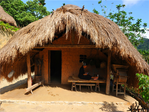 船形屋有高脚船形屋与矮脚(落地式)船形屋之分,外形像船篷,呈拱形。船形屋的建筑特点是,平面呈纵长方形,两端山墙设入口,屋盖一般是半圆拱形,房屋的轮廓像是一条倒扣的帆船。这类房屋不设窗户,只从两端开门,前面有一个阳台,置一个楼梯供上下,进门后整个“船”身分为三节,像三个舱,各有小门相通,第一节是“厅”,设有阁楼,存放粮食与杂物、家什等;第二节是卧室,除了放床以外,还放火灶,作为蒸酒或烤火之用;第三节面积最小,开一个后门,是每天舂米和放置生产工具、鸡窝的地方。