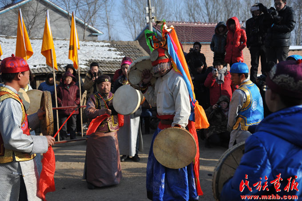 二月初二,俗称龙抬头的日子,满族同胞也称“锁龙节”。在满乡新宾居住的满族同胞十分重视这个民间节日,如同过年或过大节一样。妇女们在头节就忙着筹备,首先需要准备的是“山房草”(亦称“苫房草”),还有各色布块、五彩绒线等。二月初一动手串龙头、龙身、做龙尾。她们把山房草叶去掉,将秸杆剪成大则二寸有余,小则一指宽的节骨,再把各色花布剪成指甲大小的圆布。先将二寸来长的山房草杆,串成不超过手掌大的盖帘,再剪成椭圆形圆帘子,这就是“龙头”。将红、绿、黄、蓝及各色小圆布串起,每个中间串连山房草骨节,作一大一小两个龙身。再把各色布剪成四寸或二寸长的小布条条,将各色布条串拢在一起,也作成两条龙尾。将这两条龙尾、龙身用五彩线串在帘子式的龙头上,整个龙就做成了。大人把它戴到孩子大襟上,祈祷在夏天老天打雷天龙行雨时吓不着孩子;上山采菜、捡木耳、采榛子、捡蘑菇,有龙岗山大苍龙保佑。据说各色布龙身子和五色线避邪,孩子受不着灾,人人健壮结实,个个平平安安。