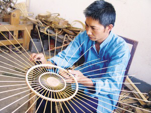 布依族鸟笼制作技艺传承人黄廷峰在制作鸟笼