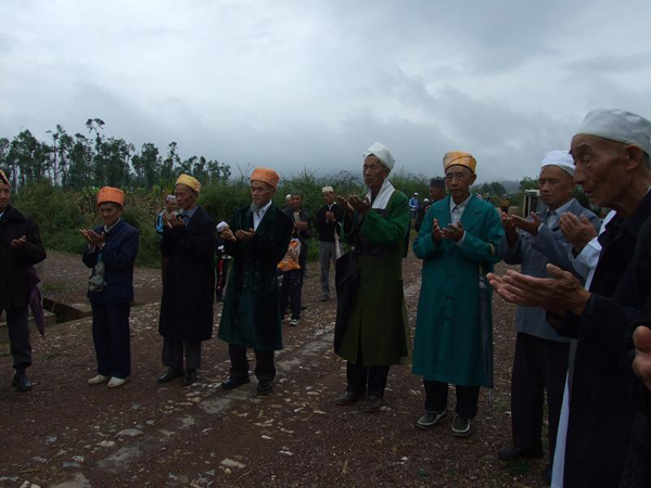 巍山回族男子的白帽多为平顶的圆形帽,一般用的确良、涤卡、棉布等布料制作,也有用白棉线钩制的。黑色帽用的多为平绒、棉粘毛毡、华达呢等材料,用毛线钩织也可。圆帽分两种:一种是用白漂布制成的;一种是用白线或黑色丝线织成的。白帽从颜色上看,通常有白、灰、蓝、红、黑等各种颜色,有的是纯色,有的是多种颜色搭配而成。白帽上常织有伊斯兰风格花边或几何图案,如星月图案、阿拉伯文的“真主至大”、“清真言”等。花卉图案与阿拉伯文字图案是回族服饰最常用的纹样。巍山回族男子的缠头“戴斯达尔”,长度一般为9~12尺,儿童的偏短一些。前面缠到发际处,缠巾的一端留出一肘长吊在背心,另一端缠完压在脑勺缠巾层里,色以白、黄为主。回族男子节日传统服饰“绿衣”一般采用毛呢料,夹层,较厚。男子服饰“准白”一般选用白色的棉布或的确良、化纤料或毛料制作,其款式近似现代的长大衣,领子一般都是制服领口,较薄。