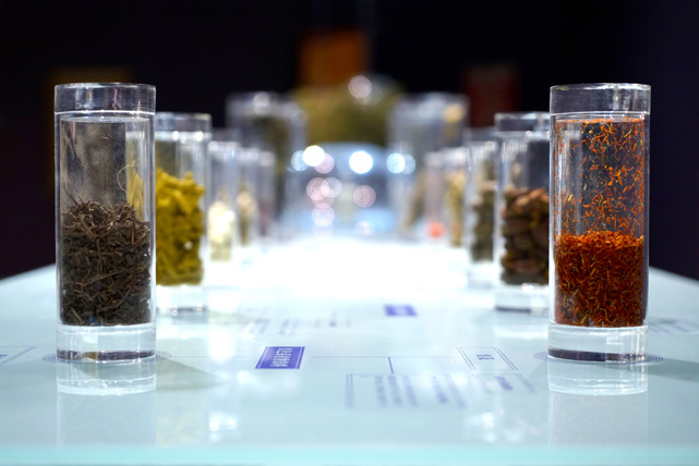展览还用特别的篇幅呈现了民族服饰对天然材质的取用。天然,这种被视为极致的现代奢华,只不过是传统社会中人类曾经习以为常的日常生活状态。那些在当代被念念不忘、不断回归的传统工艺表明,传统依然活着,并且具有强大的生命力。