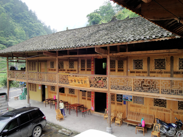 寨中土家吊脚楼原始古朴,分布广泛,民族原生态文化保存完好,民族风情醇厚浓郁。吊脚楼形态有全吊型、半吊型等多种样式。瓦屋顶均有花屋脊和翘角,四周设置栏杆走廊,雕栏花窗。原始的土家吊脚楼民居、原生态的生产生活方式、原味的土家民俗风情,无一不令人神往。
