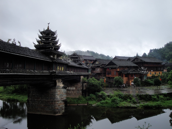 过了风雨桥,就能看见寨中的石板坪上站着的男男女女、老老少少,大家身着盛装,唱着山歌,小伙子们跳起粗犷豪放的芦笙舞在迎接远方来的客人。侗乡的热情好客,确实名不虚传。