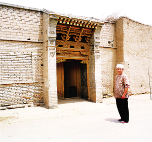 甘肃东乡族自治县达桥镇陈家村砖雕和木雕结合的大门