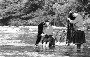 尽管红瑶妇女的头发很长,但仍然乌黑发亮,就连80岁的阿婆头上也少有白发,很少开叉。秘诀在哪儿?村里的村民告诉我,红瑶的每家每户火塘旁都会有一个陶罐,里面装的是红瑶妇女们贮存起来的淘米水。经过火塘的烘烤加热和发酵,淘米水就成了红瑶女子们独特的护发秘方。她们每隔几天梳洗一番,每次梳洗,首先把长发浸泡在“淘米水”中充分吸收营养,再用山泉水洗净,然后梳理晾干。这些秘制的“淘米水”就成了红瑶妇女们的“高级洗发水”。每个瑶寨周围几处清澈的山泉,便成了她们天然的“梳妆台”。