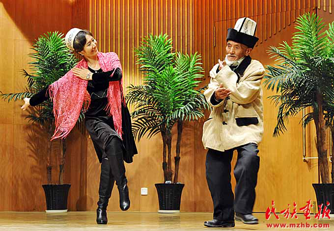 群众和玛纳斯演唱大师居素甫·玛玛依同台表演