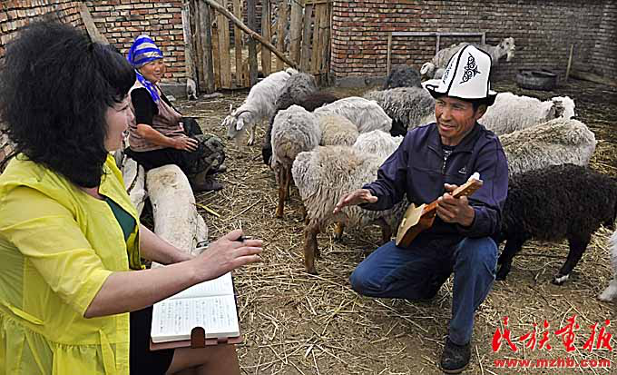 新疆维吾尔自治区民间文艺家协会工作人员在阿图什市哈拉峻乡挖掘整理《玛纳斯》