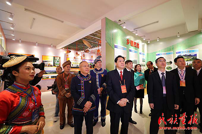 参加环江毛南族自治县县庆活动的全国人大民委、国家民委祝贺团和广西壮族自治区代表团、河池市代表团成员参观环江县经济社会发展成就展