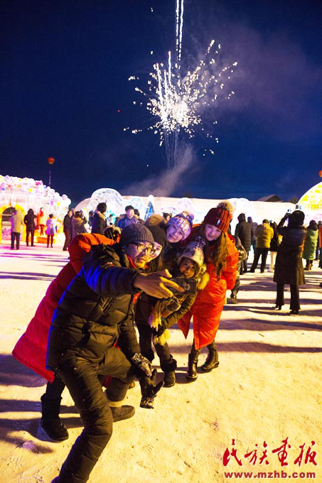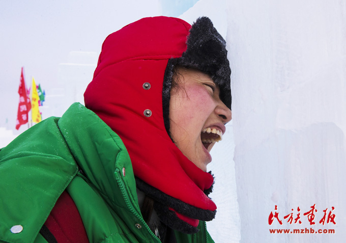 南方的游客第一次看到那么美的雪、那么厚的冰,激动地想咬一口(武倩 摄影)