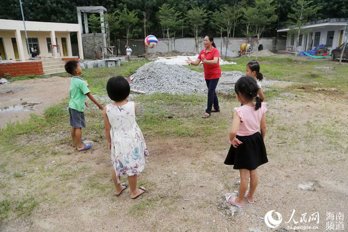 王金花在番打小学与孩子们一起玩耍