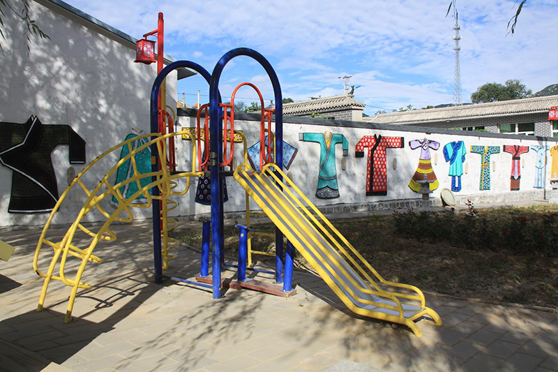 村子的胡同干净整洁,精心设计的院墙上分别绘制着中国古代《二十四孝图》浮雕、新编《二十四孝图》彩绘图、国学名言名句砖雕以及各种助人为乐儿童图画。