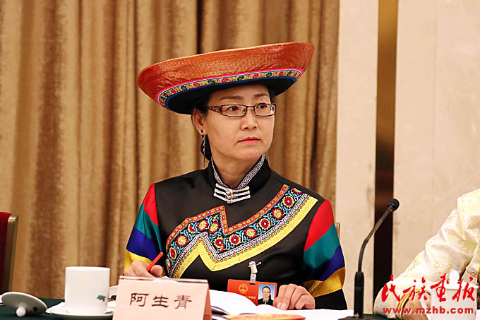 “头戴织锦大圆帽,腰系花带,身穿七彩袖的黑底长裙,阿生青作为人口较少民族土族的代表,这一身别致的服饰在十三届全国人大一次会议青海团的代表中颇为亮眼。她来自青海省互助土族自治县高寨镇,2016年8月,习近平总书记曾到互助县班彦村考察异地搬迁项目,班彦村因此变得有了名气,作为高寨镇副镇长,她喜欢与别人分享这个村子的故事。事实上,班彦村只是当地扶贫攻坚中异地搬迁项目的样板村,县里诸多其他扶贫项目在近几年也开始发力,生态旅游、特色产业、养殖扶贫等项目如今已经依托各村实际,发展得红红火火,土族百姓的好日子正在翻开崭新的一页。