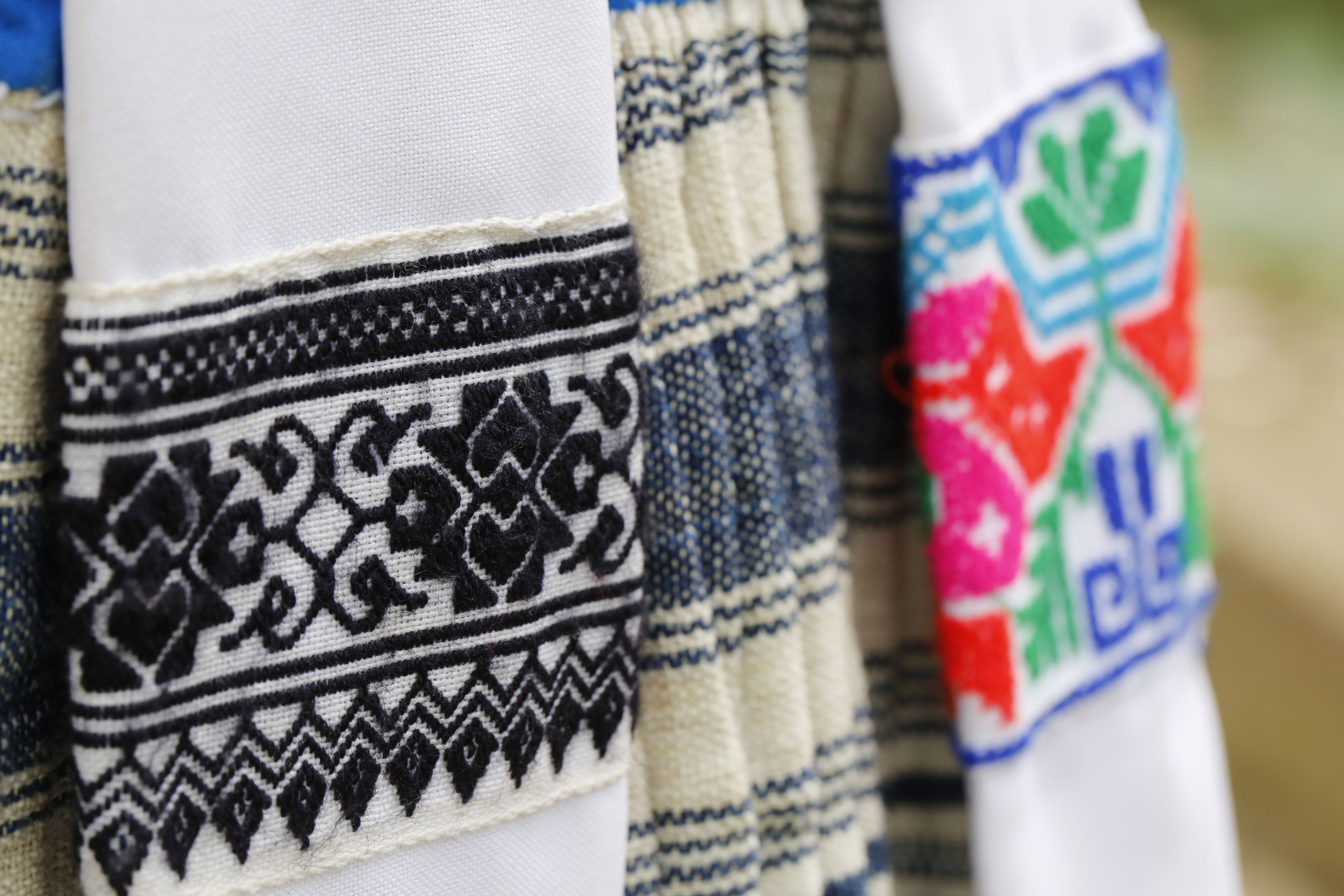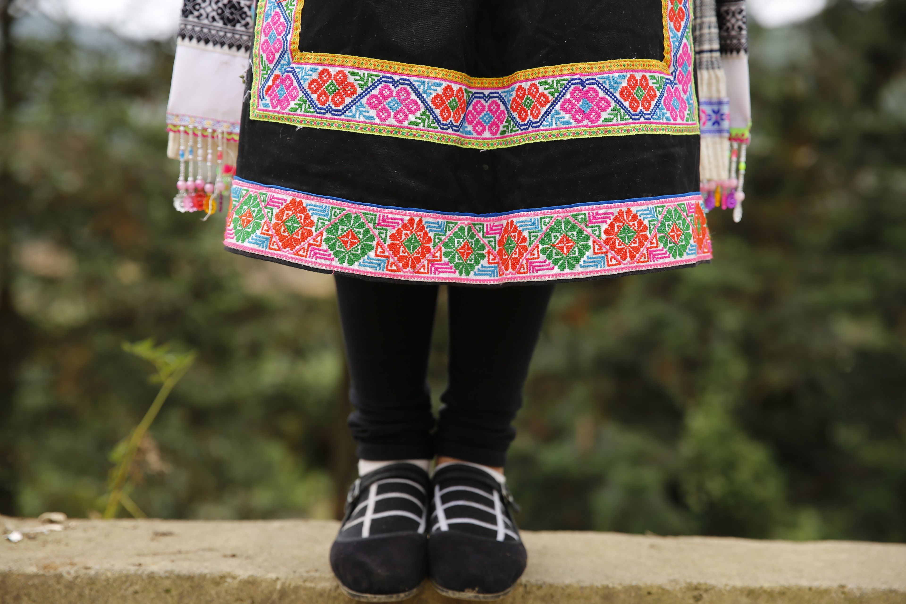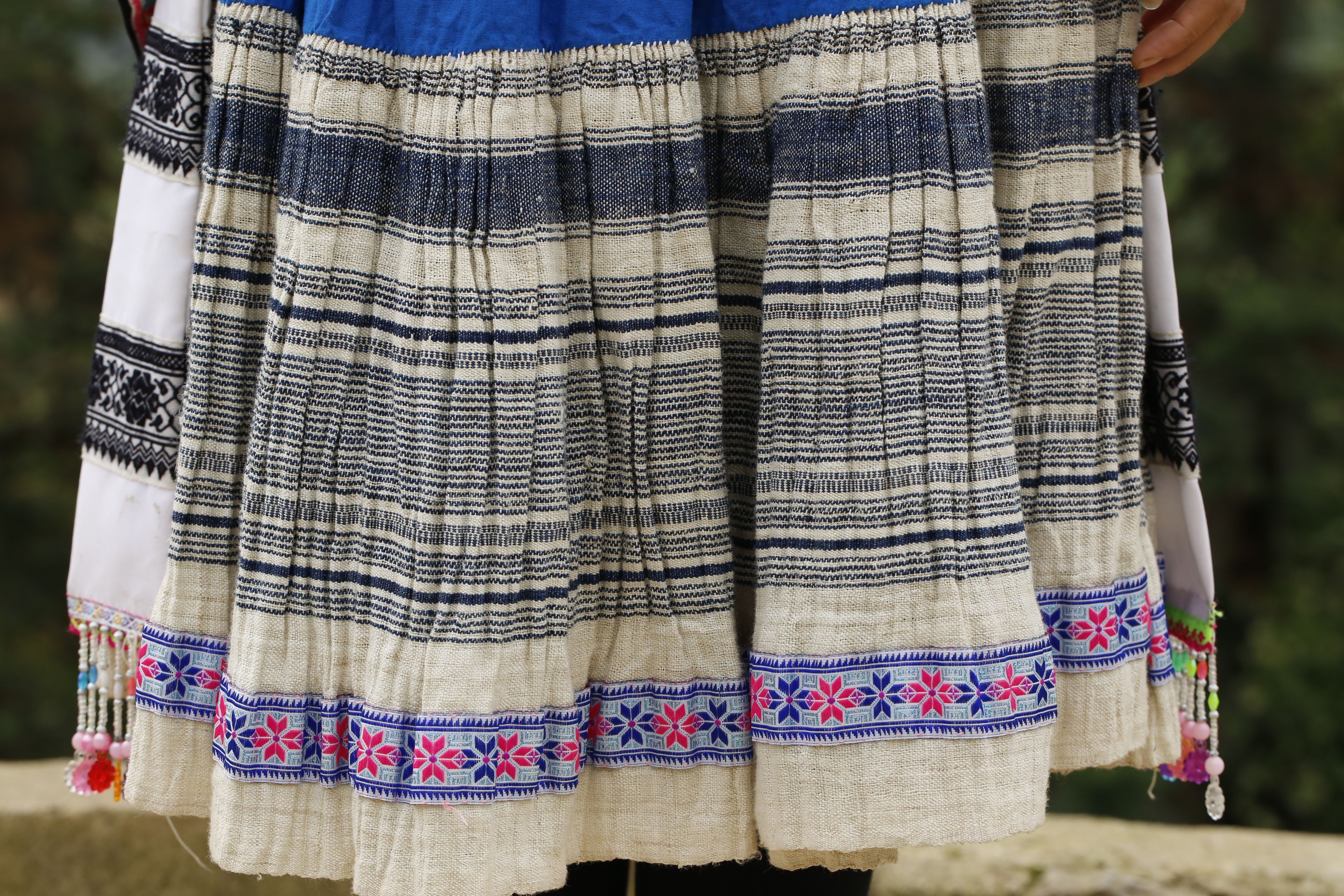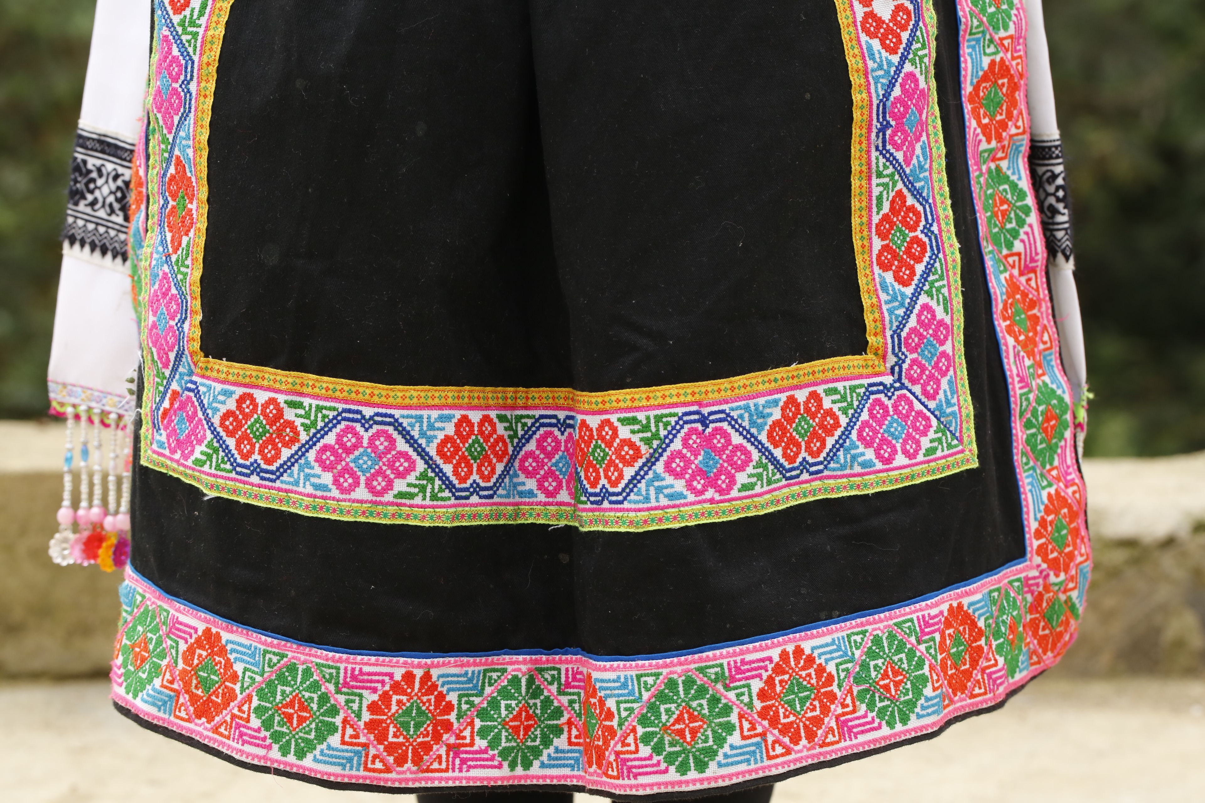 苗族女子服饰花带百褶裙-裙摆侧面绣花及印染
