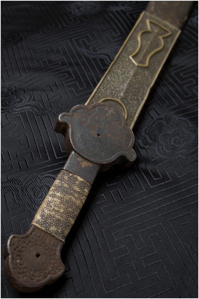 全白铜浮雕龙图,鲨鱼皮勒鞘,民国