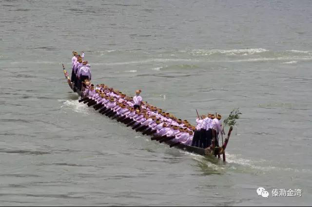 每年的泼水节,西双版纳傣族都要举行横渡澜沧江的赛龙舟活动。一般在泼水节的第一天举行。比赛时,江上停泊着披绿挂彩的龙船,船上坐着数十名精壮的水手,船中间站立1人击锣指挥,号令一响,整装待发的龙船像箭一般往前飞去,在规定的范围内,哪一队先到达目的地为胜。